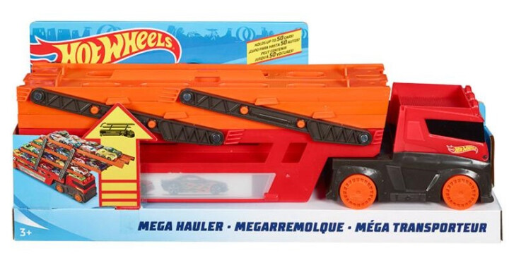 Pull more than 50 die cast cars in one go with the hot wheels mega hauler!